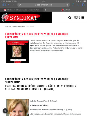 ...Glauser Krimipreis in der Kategorie Kurzkrimi gewonnen!